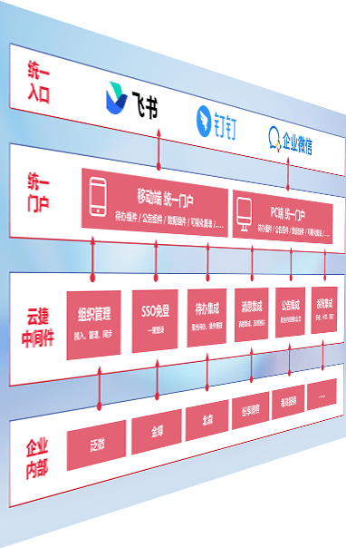 对协作平台提供支持服务,,,支持企业应用与协作平台对接,,,包含组织同步、、、、消息集成、、、待办集成等。。。支持目前主流的协作平台:钉钉、、、、企微和飞书。。。。
