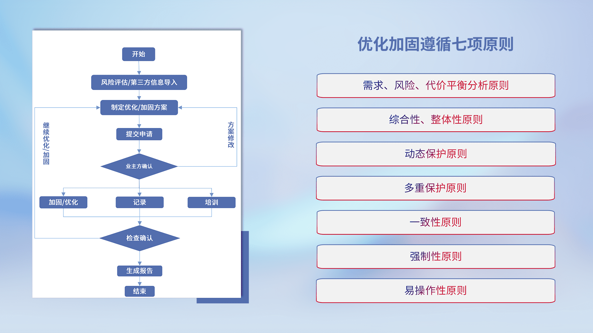 最大程度利用现有资产,,,对评估发现的问题进行封堵与整改,,,,防止漏洞被利用,,,提升整体网络安全性,,,为客户带来高标准的优化加固服务。。