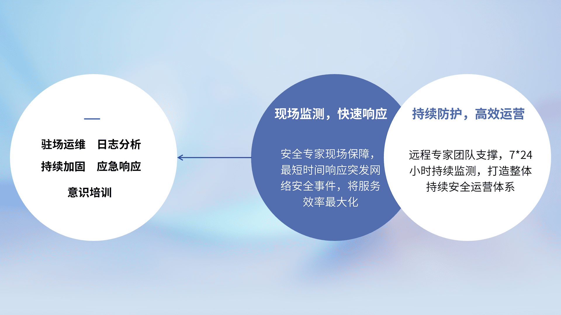 针对客户行业特性,,,,提供专属的一站式安全管理服务,,帮助客户全面感知网络空间威胁,,通过安全专家的线上、、、线下防护支持,,,,实现风险闭环,,,将安全保障常态化,,,为客户打造常态化安全运维运营服务。。。。